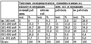 Таблица 2 Социальный статус замужних женщин-матерей с различной ориентацией на профессиональную занятость
